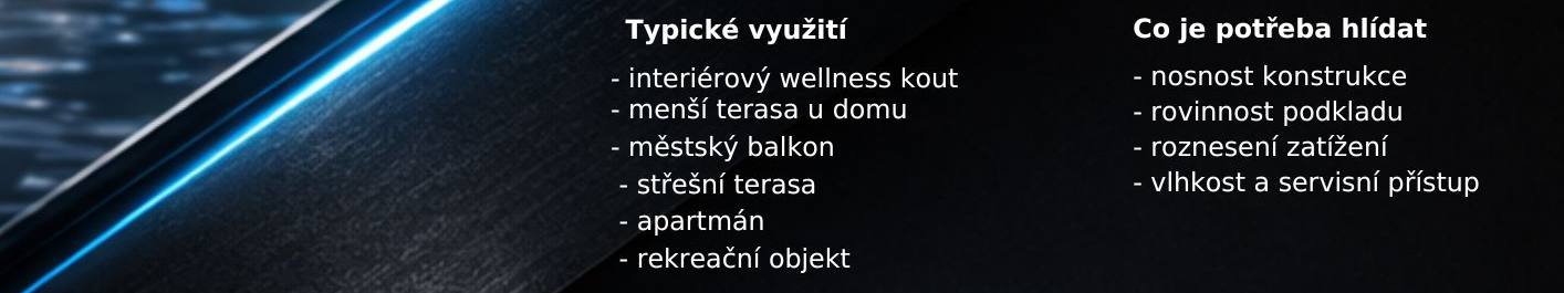 Rooftop instalace působí luxusně, ale vyžaduje promyšlený projekt. Klíčová je statika, hydroizolace, odvodnění, doprava vířivky i budoucí servis.